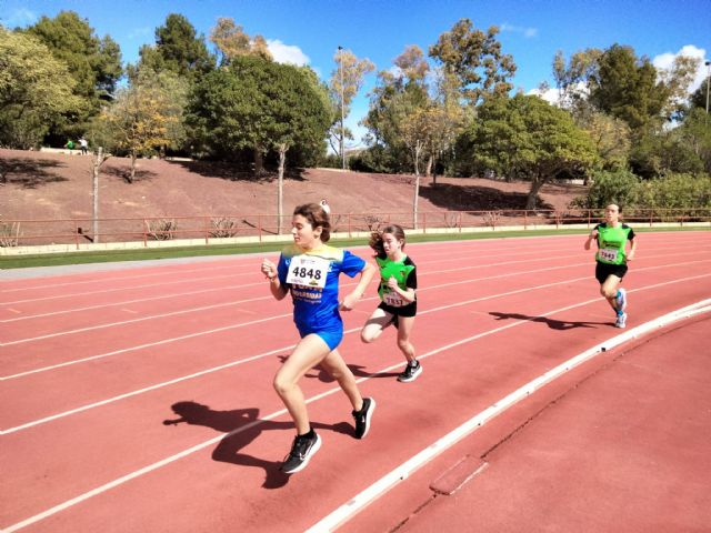 En el apartado femenino, la victoria en 80m.l. fue para Inés Martínez, del Yecla Atletismo (11.28), imponiéndose en 500 Emma Navarro, del C.A. La Unión (1:27.05), así como la atleta del UCAM Cartagena Ikhlas Rabhi en 1.000 (3:28.11) y Elena Pérez, del C.A. La Unión, en 2.000 (7:43.98). En 80m. vallas 0,762 obtuvo la victoria Rocío García, del Atletismo Alhama (14.15), mientras en 220m. vallas 0,76 lo hizo Celia Cantos, de la ADA Yeclano (36.66), siendo el triunfo en pértiga para Mª Victoria Navarro, del C.A. Murcia PDS Group (2.10).