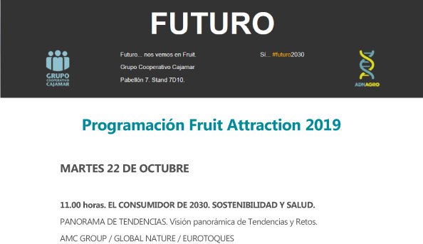 Durante las tres jornadas de Fruit Attraction el estand de Cajamar, ubicado en el Pabellón 7, estand 7D10, será el punto de encuentro para el intercambio de experiencias y conocimiento, con la finalidad de enriquecer, cooperar y ayudar a afrontar el futuro más inmediato, así como los retos principales que presenta la Agenda 2030: la sostenibilidad y la salud, y la producción de alimentos saludables.