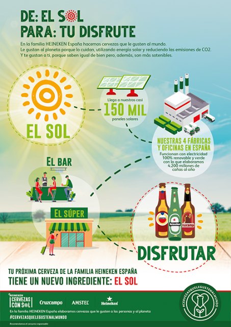 Tal y como ha explicado Guillaume Duverdier, presidente de HEINEKEN España: “El sol es el nuevo ingrediente secreto de las cervezas de la familia HEINEKEN. Nuestras cervezas elaboradas con el poder del sol contribuyen a regenerar el medioambiente aprovechando una fuente de riqueza natural que nos promete millones de años de emisiones cero. Y un elemento esencial de la cultura, el carácter y el calor de la vida social de los españoles. Porque todos ganamos al sumarnos a la lucha contra el cambio climático: gana la naturaleza y gana la economía”.