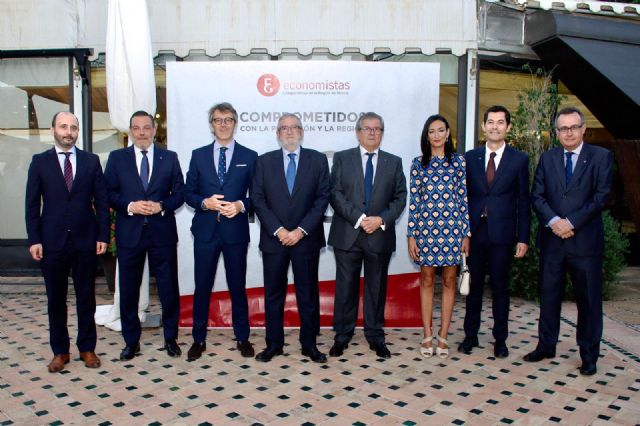 El presidente de la Asamblea Regional, Alberto Castillo, junto al consejero de Economía, Hacienda, Luis Alberto Marín, y M. Valle Miguélez, consejera de Empresa, Empleo han entregado los Ecónomos 2022 de Plata y Bronce a los colegiados que llevan 25 y 15 años en la institución, respectivamente
