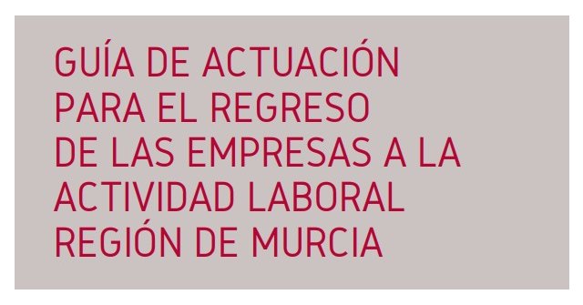 La Consejería de Empleo, Investigación y Universidades, a través de la Dirección General de Diálogo Social y Bienestar Laboral, y en coordinación con la Consejería de Salud, ha elaborado una guía con el fin de facilitar a las empresas de la Región orientaciones y recomendaciones sobre las medidas para prevenir y evitar la posibilidad de contagio por Covid-19. Dicha guía se encuentra disponible en la web del Instituto de Seguridad y Salud Laboral (ISSL), y ha sido remitida a agentes económicos y sociales, así como a servicios de prevención de riesgos laborales.