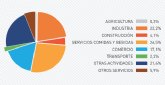 Por sectores, el mejor comportamiento se registra en Agricultura. Por su parte, Construcción y Servicios es donde la caída anual es más acusada.