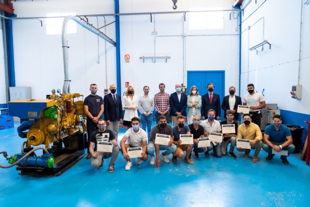 La directora general del Servicio Regional de Empleo y Formación (SEF), Marisa López Aragón, asistió hoy a la clausura del curso de mantenimiento de equipos y elementos mecánicos de motores marinos, que ha formado a 14 personas en uno de los perfiles más demandados de la industria naval de Cartagena.