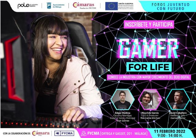 La fundación INCYDE de las Cámaras de Comercio españolas junto con el Ayuntamiento de Málaga, a través del Polo Nacional de Contenidos Digitales, y la Cámara de Comercio de Málaga, organizan en el Palacio de Ferias y Congresos de Málaga (FYCMA) el próximo 11 de febrero, el primero de 5 foros gratuitos orientados a dar a conocer las nuevas oportunidades profesionales para los jóvenes menores de 30 años, dentro del proyecto “Juventud con Futuro”, financiado por el FSE.