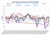 Los precios de los mercados eléctricos de gran parte de Europa registraron en los primeros cuatro días de esta semana una bajada significativa respecto a los días homogéneos de la semana pasada. La mayor caída fue la del mercado EPEX SPOT de Alemania, de un 40%, y el precio promedio en estos cuatro días fue de 19,14 €/MWh. En este mercado hubo varias horas con precios negativos o muy cercanos a cero entre el lunes y el miércoles. Los mercados de la parte sur de Europa, IPEX de Italia y MIBEL de España y Portugal, fueron los únicos en los que el precio promedio subió ligeramente en este período, siendo el mercado italiano el de mayor crecimiento, de un 2,9%.