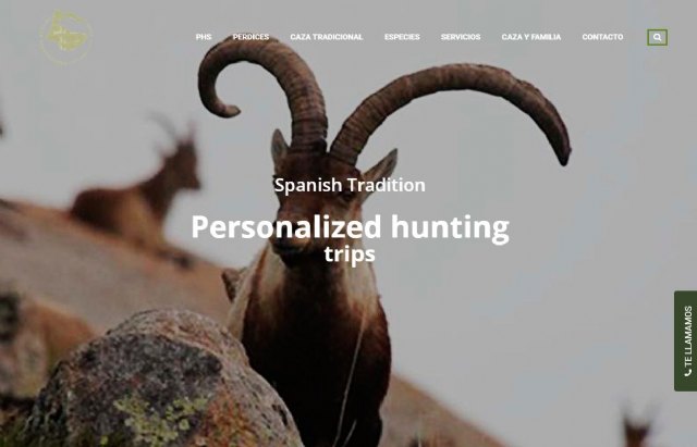 El verde oliva y el caqui, tan vinculados a la caza y los deportes outdoors, sobresalen en el diseño web de Pro Hunting Spain, con un menú en su cabecera o header que facilita la navegación: ‘PHS’, ‘Perdices’, ‘Caza tradicional’, ‘Especies’, ‘Servicios’, ‘Caza y Familia’ y ‘Contacto’ son los elementos disponibles en dicho menú, presentes también en el parte inferior (footer), junto con una descripción de la empresa. En la sección final figuran igualmente enlaces de interés legal (‘Aviso Legal’ y ‘Política de Cookies’) y las redes sociales de Pro Hunting Spain, donde esta firma de viajes cinegéticos cuenta con una creciente comunidad de seguidores.