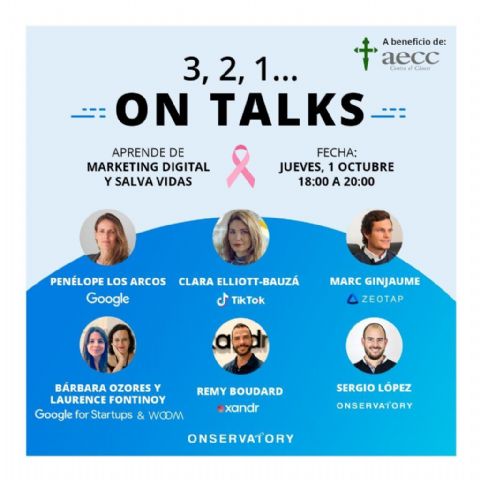 La Asociación Española Contra El Cáncer (AECC) y la empresa Onservatory, plataforma malagueña especializada en formación en marketing digital, han presentado la primera edición de “3,2,1… ON TALKS”, una jornada gratuita de formación en marketing digital que tendrá lugar el próximo jueves 1 de octubre, de las 18 a las 20 horas, a beneficio de AECC, en el marco de la conmemoración del Día Mundial del Cáncer de Mama (19 de octubre).