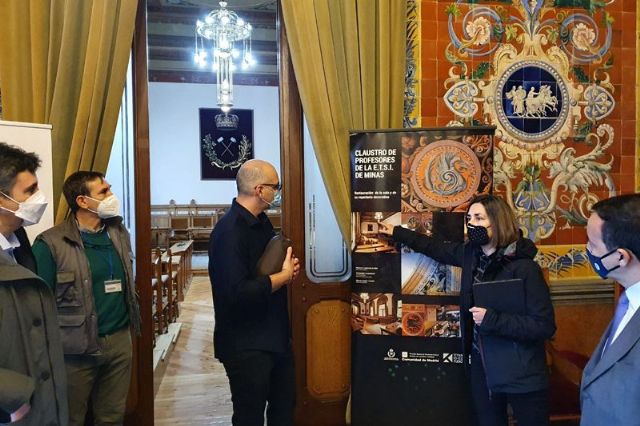 El pasado lunes día 8 recibieron en la Escuela Técnica Superior de Ingenieros de Minas y Energía (ETSIME), de la Universidad Politécnica de Madrid (UPM), una visita técnica del equipo de la Dirección General de Patrimonio Cultural de la Comunidad de Madrid, encabezada por el Subdirector General de Protección y Conservación D. Lucas García Guirao. El primer objeto de esta visita, han sido los trabajos de restauración del vestíbulo del edificio histórico de la Escuela, que se están llevando a cabo en estos momentos por cuenta de dicha Dirección General.