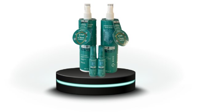 Dentro de la gama principal de Nanomed se encuentra Star Virus Shield H1-03G Hands, solución protectora de higiene y limpieza total, para manos, que previene contagios durante 4 horas. Se encuentra en presentaciones de 500 ml, 30 ml y monodosis de 5 ml.
