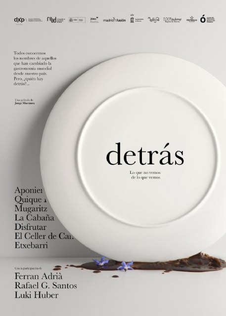 «DETRÁS» ha sido posible gracias al apoyo de DIP y del resto de asociaciones de READ, el Ministerio de Cultura y Deporte, 2deo, Madrid Fusión, Ayuntamiento de Murcia, 1.001 Sabores Región de Murcia, Estrella de Levante y la Asociación de Fabricantes de Pimentón. El equipo técnico que ha acompañado a Jorge Martínez, ha estado conformado por Óscar Vicentelli y la productora Maskeline, A Visual Foundry, plenamente comprometidos con el proyecto.