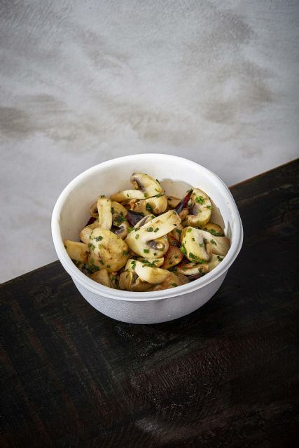 250gr. champiñones/ 2 dientes de ajo Primaflor/Guindillas cayena/ 1 manojo de cebollino/ 50 gr. de aove/ 50 gr de ajilimolili (15 gr de perejil, 5 gr de ajo, 5 gr de zumo de limon,30 gr de aove)