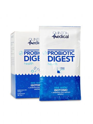 La combinación de probióticos y agua de mar isotónica Quinton, una solución polielectrolítica que por su contenido en cloruro favorece los procesos digestivos, convierte a Quinton Medical Probiotic Digest Health en una innovadora herramienta para manejar alteraciones de la microbiota intestinal.