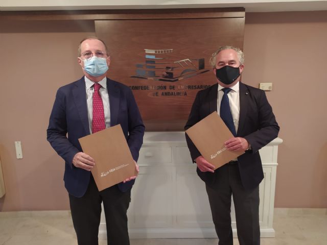 La Confederación de Empresarios de Andalucía (CEA), la organización empresarial más representativa de la Comunidad, y el Grupo Adecco, líder en la gestión de los Recursos Humanos, han suscrito un convenio de colaboración, cooperación y asesoramiento atendiendo a la crisis provocada por la pandemia. Tal acuerdo, fruto del compromiso con el desarrollo económico y social de Andalucía, ha sido firmado por el secretario general de CEA, Luis Fernández-Palacios, y el director general de sostenibilidad del Grupo Adecco, Francisco Mesonero Fernández de Córdoba.