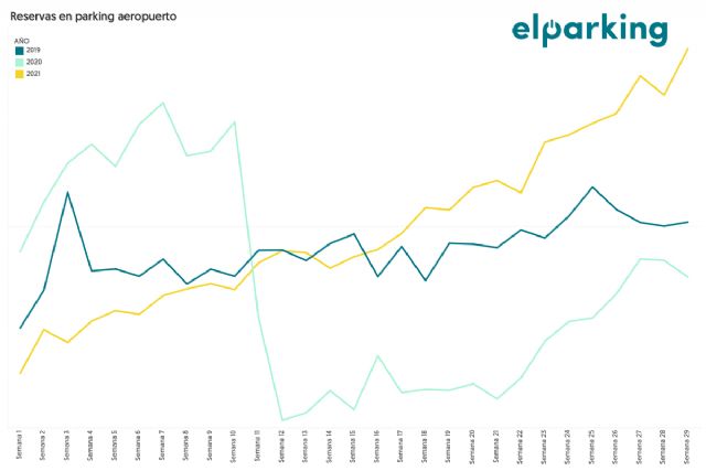 Según los datos que maneja ElParking, los aparcamientos de los aeropuertos españoles han necesitado doce semanas del año para alcanzar los niveles de 2019, donde el número de reservas igualaron las conseguidas en este año.