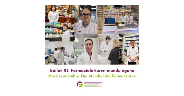 El sábado, 25 de septiembre, se celebra el Día Mundial del Farmacéutico y, con motivo de esta conmemoración, el Colegio Oficial de Farmacéuticos de Gipuzkoa (COFG) ha organizado diversas iniciativas para dar visibilidad y felicitar a los 1.175 farmacéuticos que trabajan en el territorio, en primera línea y desde diferentes ámbitos de actuación farmacéutica.