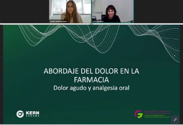 Bajo el título "Abordaje del dolor en la farmacia, dolor agudo y analgesia oral", el Colegio Oficial de Farmacéuticos de Gipuzkoa (COFG) ha organizado un curso online impartido por Sandra Moreno, farmacéutica y Medical Affairs en Kern Pharma
