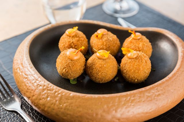 Apostando por una travesía gastronómica y la mejor selección de la materia prima, encontramos entrantes como: Croquetas de pollo korma con curry inglés y sala kimchee; Ensalada de stracciatela con pimiento caramelizado, tomate semi seco y brotres tiernos; Setas de cardo con panko, huevo a baja temperatura y miel de caña y por último una Vichyssoise de berros con espuma de espárragos y almendra marcona. Toda una explosión de sensaciones para dar paso a los platos principales: Brochetas de pollo Stay con pad choy salteado y arroz jazmín; Chipirones a la brasa con especias cajún, arroz frito y aceite verde; Timbal de rabo de vaca con cremoso de boniato asado y demi-glace texturizada y Arroz con verduras de temporada con mahonesa verde y cebollino.