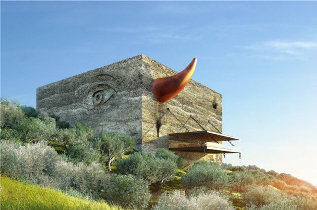 LA Almazara La Organic supondrá un atractivo único en el mundo, tanto por la experiencia que ofrece como por su valor arquitectónico. Será un edificio monumental, un cubo de hormigón ecológico, de unos 2,600 m2, incrustado en el terreno para tener el menor impacto visual posible sobre el idílico paisaje, con símbolos representativos de la cultura andaluza, como su cuerno taurino o la aceituna en uno de sus muros, así como un ojo que fue diseñado en su momento por el pintor malagueño Pablo Picasso.