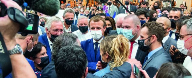 Imagen impactante: un Presidente de la República francesa en los pasillos de Sirha por primera vez en 40 años. Emmanuel Macron estuvo el último día del salón para encontrarse con los profesionales de la gastronomía y demás actividades relacionadas con la alimentación y expresarles su solidaridad.
