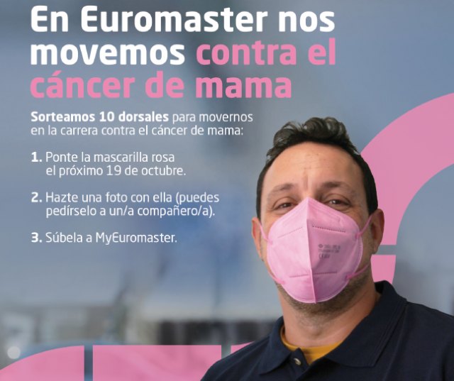 Asimismo, la red de talleres promoverá esta acción entre sus trabajadores, animándolos a colgar en la red social interna de Euromaster fotos con sus mascarillas bajo la etiqueta #euromastercontraelcancerdemama, con el fin de sortear 10 dorsales para la Carrera de la Mujer que se celebra el 24 de octubre en Madrid, una ‘marea rosa’ que va recorriendo las diferentes ciudades de España y que culminará el 12 de diciembre en Gijón.