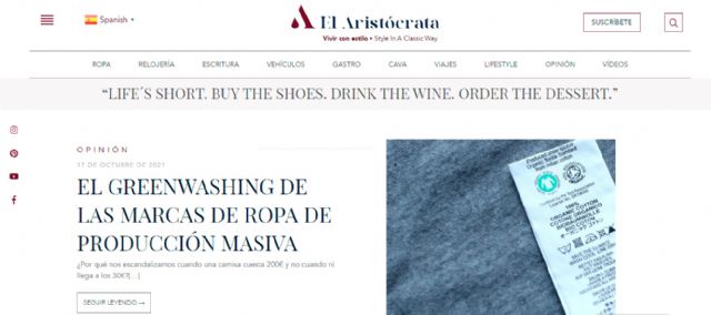 Nace "El Aristócrata", la plataforma de comunicación de estilo de vida líder en moda masculina clásica en español. Un nuevo portal que cuenta con la colaboración de expertos en estilo de vida que aportarán su visión sobre todo tipo de contenidos: desde sumilleres que nos presentarán lo último en vinos y destilados, hasta periodistas que nos hablarán de viajes con estilo y gastronomía. Un nuevo espacio de referencia para los paladares más exquisitos.