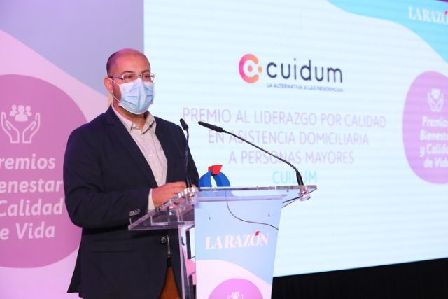 La plataforma de asistencia domiciliaria valenciana Cuidum se alzó con el galardón al 'Liderazgo por calidad en asistencia domiciliaria a personas mayores' en la gala 'Bienestar y Calidad de Vida 2021', organizada por periódico 'La Razón' en el Hotel Meliá Avenida de América de Madrid, en una ceremonia presentada el periodista Francisco Marhuenda donde se premiaron a las mejores empresas del ámbito del bienestar y la calidad de vida durante este pasado año.
