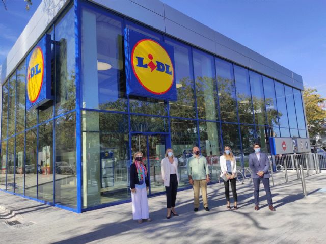 Francisco Javier Páez Vélez-Bracho, Teniente de Alcalde y Delegado de Economía y Comercio, Relaciones con la Comunidad Universitaria y Área Metropolitana, acompañado por el director y la subdirectora del Distrito Nervión-San Pablo, Diego Ayllón Naranjo y María Dolores Martínez, ha realizado esta mañana una visita al establecimiento junto a la directora regional de Lidl en Andalucía, Sophie Chatel.