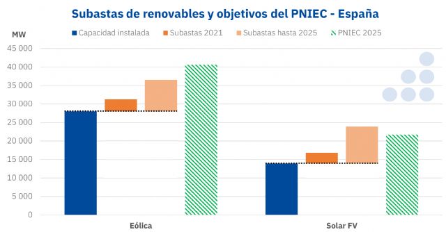 Después de los 3256 MW de eólica y los 2902 MW de fotovoltaica adjudicados este 2021, el ritmo de subastas para cumplir con el calendario a 2025 debería ser de alrededor de 1300 MW de eólica y de cerca de 1775 MW de fotovoltaica cada año.