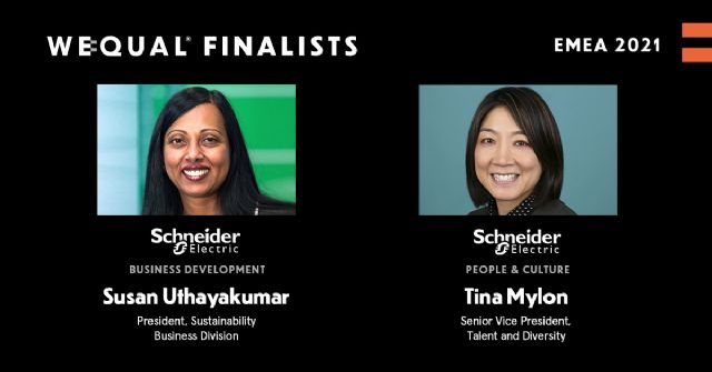 Dos altas directivasde Schneider Electric, líder en la transformación digital de la gestión de la energía y la automatización, son finalistas de los WeQual Awards 2021 para Europa, Oriente Medio y África (EMEA). En concreto, se trata de Susan Uthayakumar, Presidenta de la Sustainability Business Division, y Tina Kao Mylon, Senior VP de Talent and Diversity de Schneider Electric, candidatas en las categorías “Desarrollo empresarial” y “Personas y cultura” respectivamente.