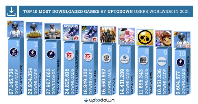 El market independiente de aplicaciones, Uptodown, hace público un análisis basado en sus datos de tráfico, señalando los juegos de móvil más populares en 2021 en todo el mundo. El género "Battle Royale" es el más demandado internacionalmente por los jugadores de móvil: PUBG Mobile y Free Fire se coronan como los reyes absolutos en Android. Tencent y Supercell son las corporaciones con más juegos en el top 30 mundial