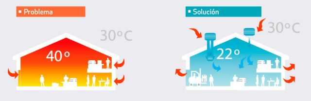 Mediante sus sistemas de climatización para instalaciones industriales, que potencian la seguridad en el trabajo. Las bajas laborales por los efectos del calor se han duplicado en los últimos 10 años