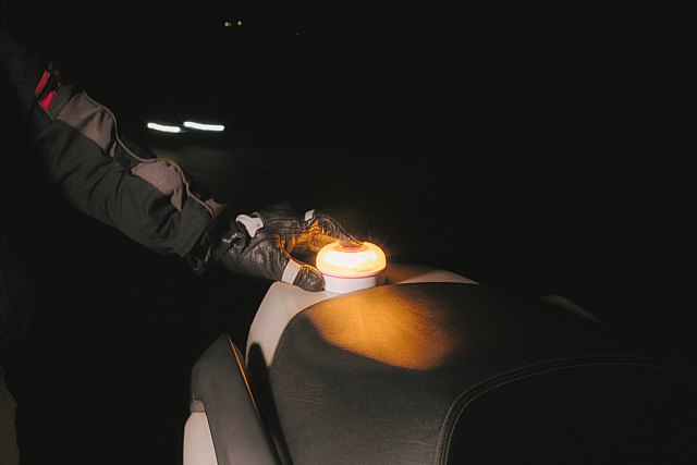 Activación magnética automática: basta con adherirlo a la superficie metálica de la moto para que empiece a emitir una señal destellante color amarillo. También se puede activar de forma manual. Se puede colocar en la parte trasera de la motocicleta, en el depósito, en la barra del espejo, sobre el asiento e incluso se puede instalar en el propio guardarraíl de la vía. Lo recomendable es colocarlo sobre el depósito de la moto o, en caso de llevar una maleta o baúl, adherirla a la parte superior del mismo.