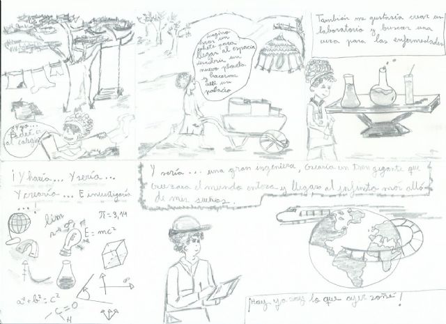 Los alumnos de los primeros cursos, han reflejado su visión de cómo es la mujer científica. Los más mayores, han demostrado que conocen a las científicas más reconocidas, saben de su trabajo y que valoran lo difícil que en su momento fue para ellas hacer una carrera mayoritariamente realizada por varones. Pero lo más interesante es que valoran positivamente que la lucha contra la "diferencia" está empezando a formar parte del pasado".