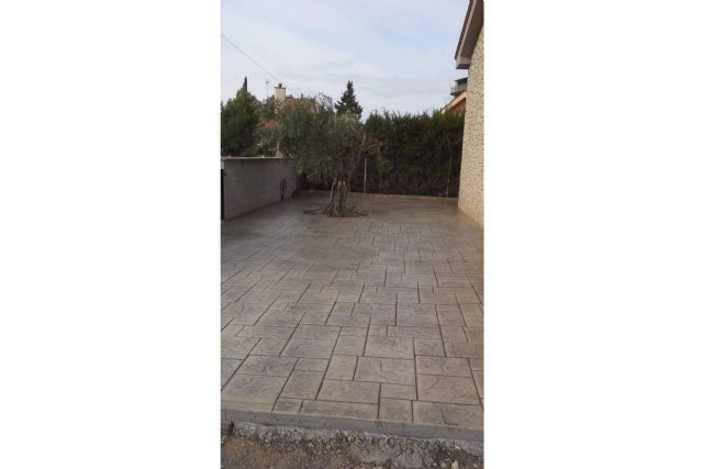 El hormigón impreso ofrecido por Hormigones Adrián goza de impermeabilidad, resistencia a rayos UV, sencillo mantenimiento, diseños exclusivos, perdurabilidad y una amplia gama de colores y formas. Esta compañía entrega este material en forma de polvo ya preparado en fábrica, con lo cual se garantiza su acabado de curado y color.