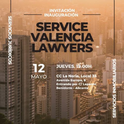 Así, el próximo jueves 12 de mayo, a las 19h, tendrá lugar la inauguración oficial del despacho de abogados Service Valencia Lawyers en el Centro Comercial La Noria. Durante el evento se podrá visitar sus instalaciones, conocer su gran variedad de servicios legales e inmobiliarios, así como codearse con el equipo que compone este nuevo despacho de abogados. Service Valencia Lawyers llega a Benidorm con el objetivo de democratizar la defensa jurídica justa para los consumidores de la Marina Baja.