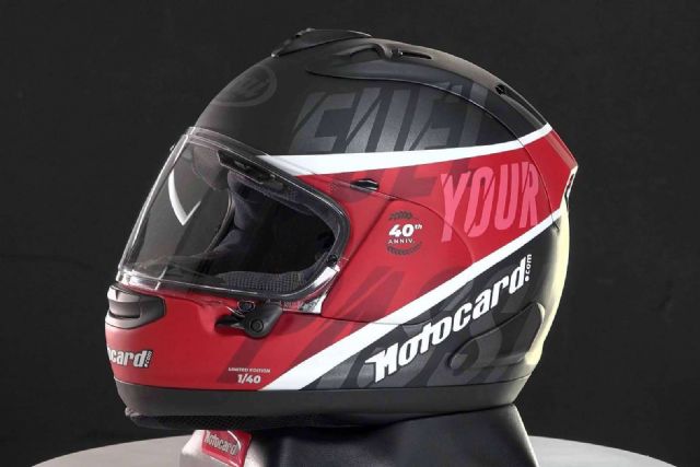 Para celebrar estos 40 años, Motocard ha producido 40 unidades limitadas de un casco Arai único y exclusivo, que incorpora una gráfica realizada especialmente para esta ocasión. Todas las unidades del casco van numeradas y se sortearán durante este año en los diferentes canales de Motocard, tanto en sus tiendas físicas como en sus redes sociales. Aprovechando su aniversario también realizarán durante todo el año descuentos exclusivos en su shop online.