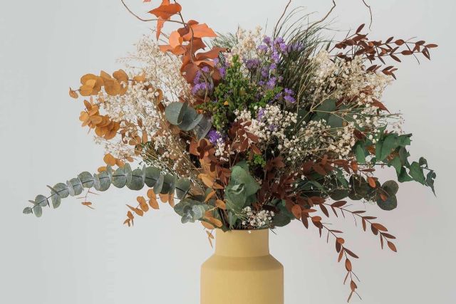 El catálogo de flores que ofrece la Kihana se compone de un grupo variado de especies de plantas ideales para llenar de vida cualquier interior. En él, es posible encontrar desde eucalipto y hortensia, hasta glixia o solidago.