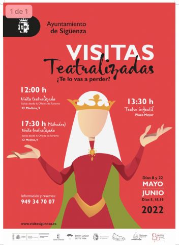 Las Visitas Teatralizadas llegan a la ciudad el marco del marco del Plan de Sostenibilidad Turística de Sigüenza, suscrito mediante convenio entre la Secretaría de Estado de Turismo del Ministerio de Industria, Comercio y Turismo, la Consejería de Economía, Empresas y Empleo de la Junta de Comunidades de Castilla-La Mancha y el Ayuntamiento de Sigüenza.