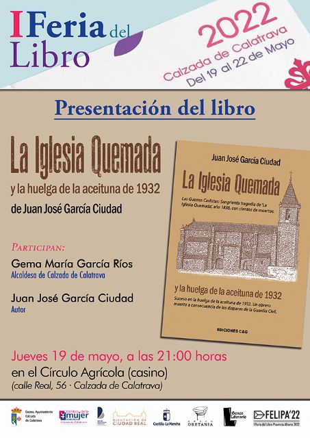 Juan José García Ciudad nos ofrece, en su nuevo libro, dos trabajos de gran importancia histórica para Calzada de Calatrava, de una parte "La iglesia quemada", sangrienta tragedia sucedida en 1838, a consecuencia del enfrentamiento entre carlistas e isabelinos. Cuando Fernando VII fallece el 29 de octubre de 1833, y su hermano, Carlos María Isidro de Borbón, no reconociendo la Pragmática, y, por tanto, a su sobrina Isabel II como sucesora, se proclama rey, Carlos V. Origen de la primera guerra carlista, que se prolongará hasta 1840. Inicio del carlismo, que en Calzada tuvo bastantes adeptos Y es en ese contexto de guerra cuando ocurre el trágico suceso que llamamos de la Iglesia quemada, 25/26 de febrero de 1838, con gran número de muertos, la mayoría inocentes, niños/as; 164 con nombres y apellidos, relación oficial de víctimas; muchos más, anónimos, hasta 300, según diversas fuentes. Al proceder, más de 80 años después, al desescombro de la Iglesia quemada, aparecieron restos de cadáveres calcinados. El otro trabajo de García Ciudad, un episodio puntual con motivo de una huelga de aceituneros, enero de 1932, en que los ánimos estaban exaltados, a flor de piel. Sólo un muerto, pero que motivaría un estado de crispación en el pueblo. Defraudados los jornaleros con la recién instaurada República, 14 de abril de 1931, recibida con esperanzas, pero que no dio respuesta a tantos problemas que tuvo que afrontar; los poderes fácticos no la dejaron..