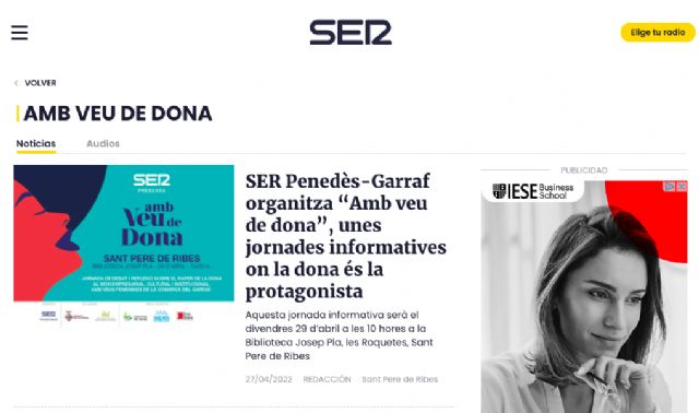 Esta edición de 2022 organizada por la Cadena SER Penedès-Garraf ha invitado a Gemma Montero como reconocimiento de ejemplo de mujer emprendedora del Garraf. La finalidad de esta jornada es debatir y reflexionar sobre el papel de la mujer en el mundo empresarial, cultural e institucional, con la voz de la experiencia de mujeres emprendedoras de toda la comarca del Garraf.