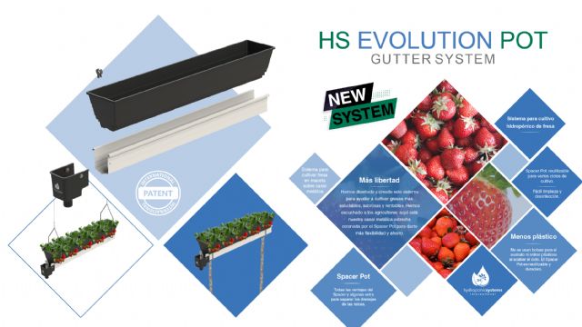 La empresa murciana Hydroponic Systems lanza al mercado la HS Evolution Pot, su nueva solución para cultivo de fresa en maceta con sustrato personalizado y sobre canal metálica elevada.