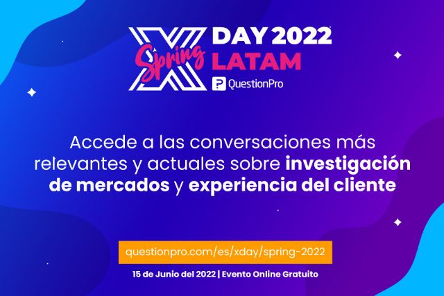 QuestionPro Latinoamérica invita a despedir con broche de oro a la primavera asistiendo al XDAY LATAM 2022 en su edición Spring, un evento online completamente gratuito que tendrá lugar el próximo miércoles 15 de junio.