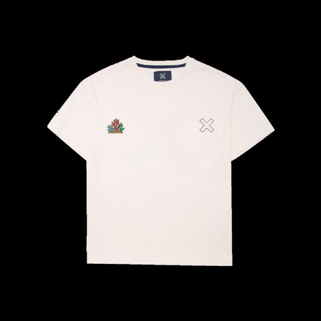 La camiseta, fabricada con algodón 100% orgánico y teñida con tintes naturales, es blanca con detalles en azul "navy". Su icónica "X" y el dibujo de unos corales aparecen en la parte delantera y el diseño de una enorme ola protagoniza la parte trasera junto al mensaje "dive into the unseen" ("sumérgete en lo desconocido"). Estos elementos hacen de esta camiseta la prenda más especial con la que conmemorar este día.