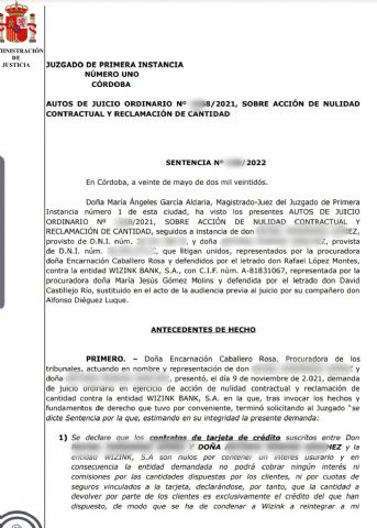 Un varapalo en toda regla a WIZINK, ya que, según RAFAEL LOPEZ MONTES, letrado que ha llevado el caso, WIZINK ha desplegado esta estrategia en miles de casos para evitar otros tantos procedimientos judiciales, y ahora puede que haya sido en vano, por lo que considera que es una sentencia pionera, aunque recuerda que aún no es firme y puede ser recurrida ante la Audiencia Provincial de Córdoba.