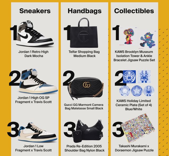 Los datos del estudio de StockX apuntan que los productos que más se falsifican y circulan por el mercado de reventa son los de lujo. En los últimos años se ha detectado un aumento de zapatillas de deporte, bolsos y artículos de colección están en auge en de la industria de la falsificación. A continuación, destacamos los modelos que más se intentan falsificar por categoría: