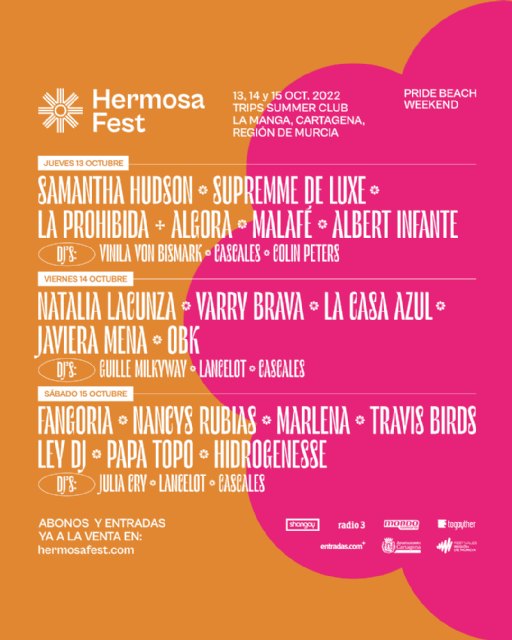 El JUEVES 13 de octubre Samantha Hudson, Supremme De Luxe, La Prohibida y Algora, Malafé y Albert Infante inaugurarán el festival con una noche única que contará con las dj sessions de Vinila Von Biskmark, Cascales y Colin Peters.