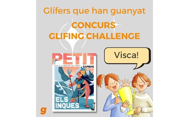 Montserrat Garcia, directora y creadora de Glifing, nos explica que “estamos muy contentos de premiar el trabajo y el esfuerzo, porque esto es lo que hace fuerte y capaz a una persona. También es bonito gozar cuando las cosas nos son fáciles, pero cuando no lo son, sólo con dedicación podemos superar los obstáculos. Por otra parte, agradecemos a la revista Petit Sàpiens que nos haya facilitado algunos de sus artículos sobre las civilizaciones humanas para utilizarlos de base para algunas sesiones de comprensión Glifing. Regalar suscripciones al Petit Sàpiens es una manera de agradecer, tanto a la revista como a los glífers, su compromiso con la lectura y la cultura”.