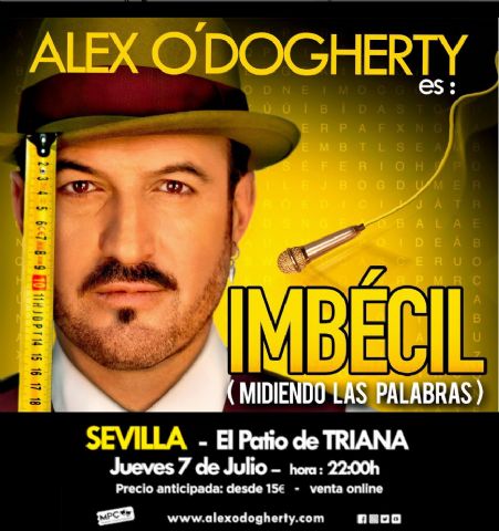 El polifacético Alex O'Dogherty cumple 25 años de profesión en la ciudad que le vio nacer como actor. Sevilla, su ciudad talismán, recibe al intérprete en un lugar tan especial como El Patio de Triana. Los hispalenses podrán reír y disfrutar del último show de Alex, IMBÉCIL, que combina humor, música y palabras, muchas palabras