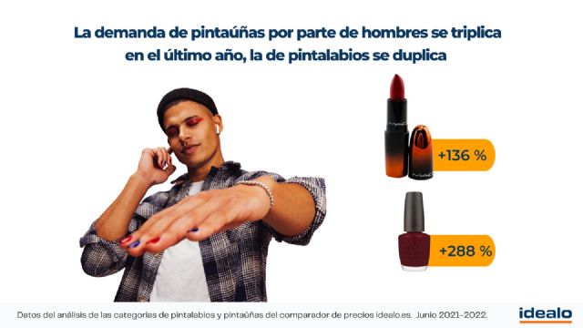 Además, los datos de idealo señalan que las búsquedas de pintalabios por parte de los hombres se han duplicado en el último año. En el caso de los pintaúñas, este producto se está popularizando todavía más entre los consumidores masculinos, con futbolistas como el bético Borja Iglesias luciendo esmalte de uñas en sus redes sociales. En el caso de este producto, el incremento es de un 288 % con respecto a septiembre del año pasado.
