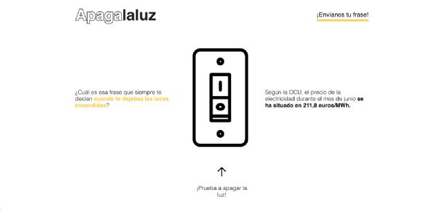 En la página se encuentra un interruptor que al apagarlo muestra las frases como: “¿Qué somos, accionistas de Iberdrola que tenemos toda la casa encendida?”, “¿Acaso la luz es gratis?” o “Como se nota que tu no pagas la factura de la luz”.